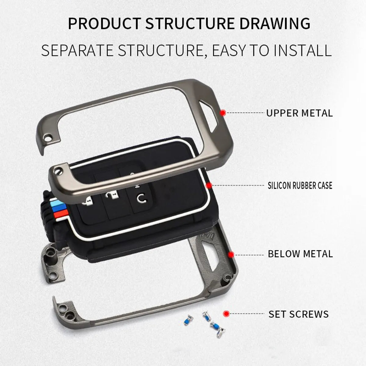 The Superior Alloy Car Key Case is constructed of premium Zinc Alloy, has an excellent touch feeling and a fashionable & remarkable design, will never be mixed up with others, and will make your key fob look brand new.