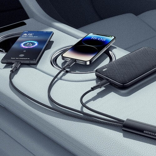 Power up your devices quickly and efficiently with the ESSAGER 3 in 1 100W Quick Charging Cable. This versatile cable supports fast charging for multiple devices simultaneously, making it perfect for both home and travel. Its durable construction ensures long-lasting performance and reliability for all your charging needs.