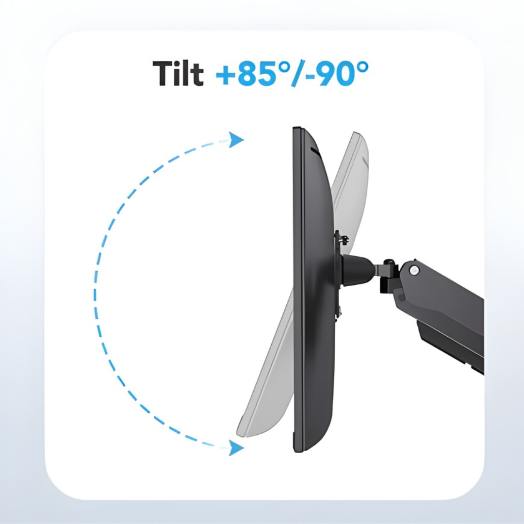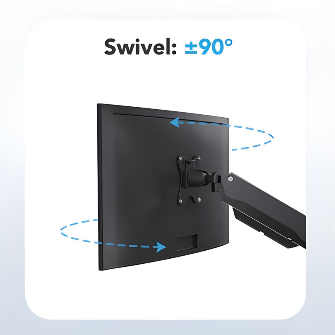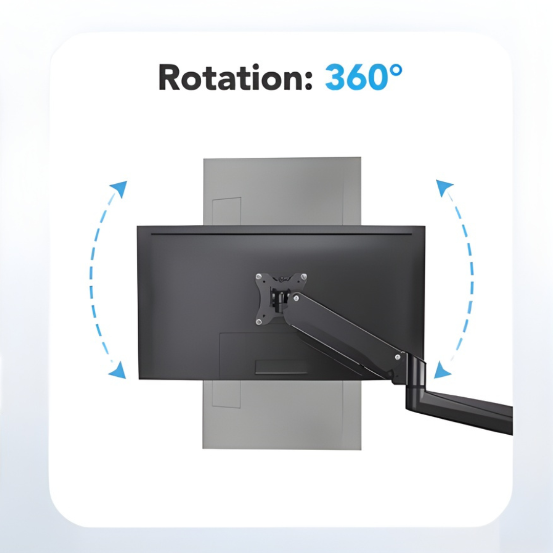 Heavy-duty gas spring arms allow tilt, swivel, and full 360° rotation