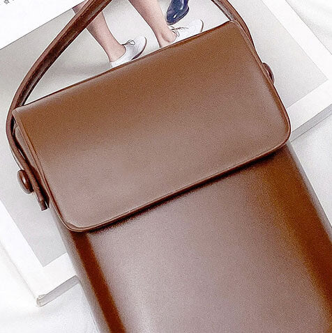 Luxury Crossbody Flap Leather Bag - Brown
