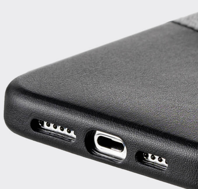 Experience the perfect blend of style and functionality with this premium Fabric/Leather combo phone case. Features a convenient slot that can securely hold 1-3 essential cards, allowing you to leave your wallet at home when heading to work, the gym, or a night out with friends.